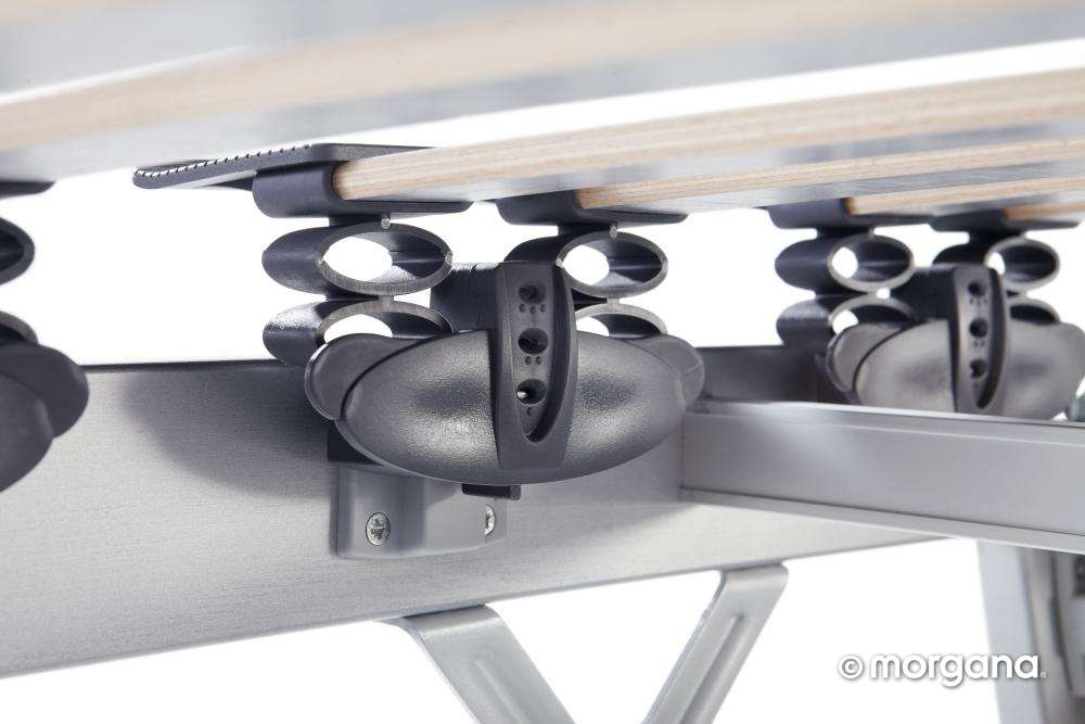 • Verende Draagelementen: Deze bevestigen de latten aan het frame, waardoor ze soepel met je meebewegen en continu de juiste ondersteuning bieden.